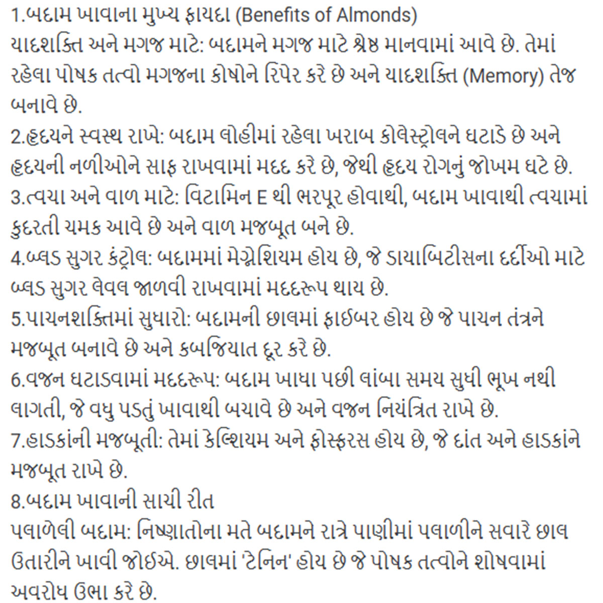 Badam (almonds) offer numerous health benefits, including: Nutrient-Rich: Badam is packed with healthy fats, protein, fiber, vitamins, and minerals. Heart Health: They can lower blood sugar levels, reduce blood pressure, and lower cholesterol levels, promoting overall heart health. Weight Management: Almonds can help reduce hunger and promote weight loss. Antioxidant Properties: They contain antioxidants like vitamin E, which protect cells from damage. Versatile Use: Badam can be easily incorporated into various dishes, enhancing both flavor and nutritio. These benefits make badam a valuable addition to a healthy diet.
